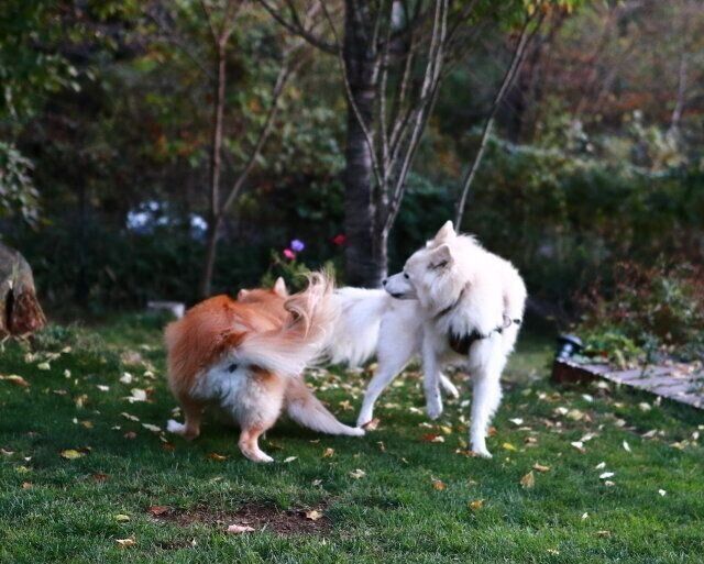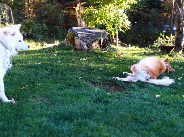 そんなことはおかまいなしに、福助は未だにバトルを挑んでいる。もう11才なのに、やっていることはガキンチョのまんまである。もし大吉がいなかったら、こんな“末っ子”丸出しの性格にはなっていなかっただろう。もし仮に、大吉がいない状態で福助を迎え、後から別の犬を迎えていたなら、兄の顔になったんだろうか。それは絶対ない気がするが。