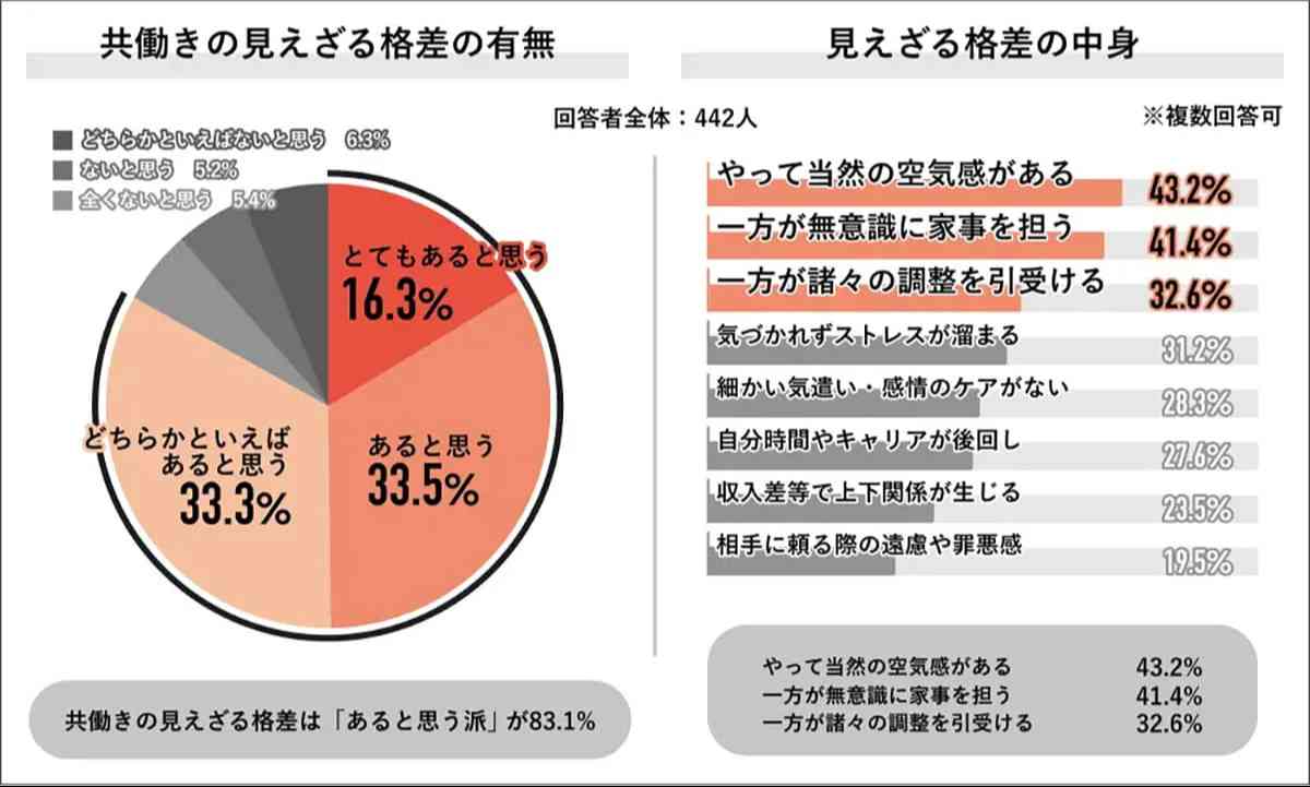 Job総研による調査によると、共働きが増えた昨今でも家事育児は「女性が多く担うのは仕方ない」といった固定観念が根強く残っていることや、表面化していないジェンダーギャップが、いまだに存在していることが浮き彫りになりました。形式的な平等ではなく、背景にある意識や構造の偏りに目を向けて、個々の家庭で柔軟な合意を形成することが大切かもしれません。<出典>共働きでも家事分担は進まず? 収入差で“家事を多く担う側”が決まる現実(スマホライフPLUS)