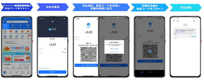 「Alipay」は、全世界で約14億人の利用者をもつ、世界最大規模のオンライン・モバイル決済プラットフォームです。今回、スプリング・ジャパンでは、「Alipay」が世界に先駆けて開発した「デュアルオフライン(*)」方式を活用することで、機内Wi-Fiへの接続なしにQRコード決済をご利用いただけるシステムを導入しました。Alipayアプリ内で「中国居民身分証」を用いて実名認証を完了されたお客さまを対象に当サービスを展開します。