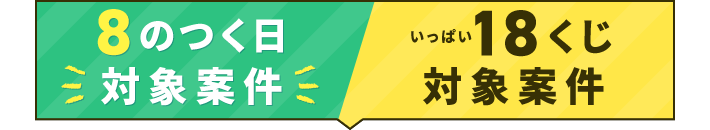 | キャンペーン内容 | 毎月18日 0:00〜23:59の間に「ポイントいっぱいくじ」の対象案件を利用すると、ポイントが当たるくじが引けるようになります。ただし、18日に同一案件を複数回利用した場合はくじ1回分と見なされます。なお、同一案件について別月でご利用の場合はそれぞれくじが引けます。 |